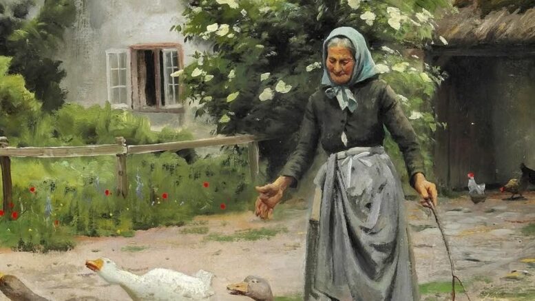 Anziana guardiana di oche – Peder Mork Monsted (1859-1941)