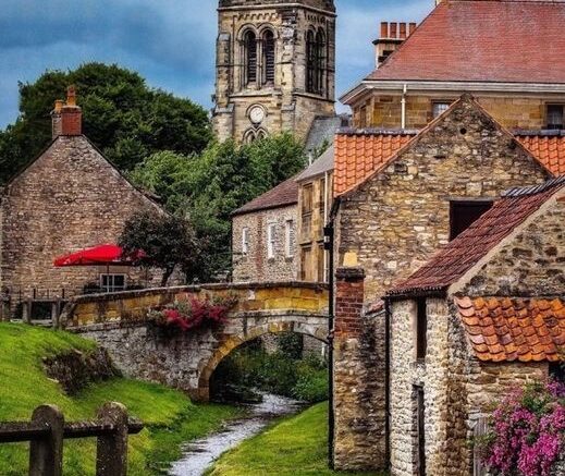 Osservando questo spaccato di Helmsley, nello Yorkshire del Nord, si viene attratti dalla nudità delle pietre delle case, dai cespugli di fiori, dai colori marcati, che spesso inframezzano le pietre…così anche dal verde intenso e sfumato dei prati.
