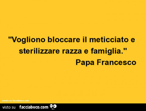 Papa Francesco ha rilasciato un’intervista a Repubblica in cui ha detto: “Si vuole bloccare quel processo così importante che dà vita ai popoli e che è il meticciato. Mescolare ti fa crescere, ti dà nuova vita. Sviluppa incroci, mutazioni e conferisce originalità. (…). Il meticciato è quello che abbiamo sperimentato, ad esempio, in America Latina. Da noi c’è tutto: lo spagnolo e l’indio, il missionario e il conquistatore, la stirpe spagnola e il meticciato. (…) costruire muri significa condannarsi a morte. Non possiamo vivere asfissiati da una cultura da sala operatoria, asettica e non microbica. (…).”