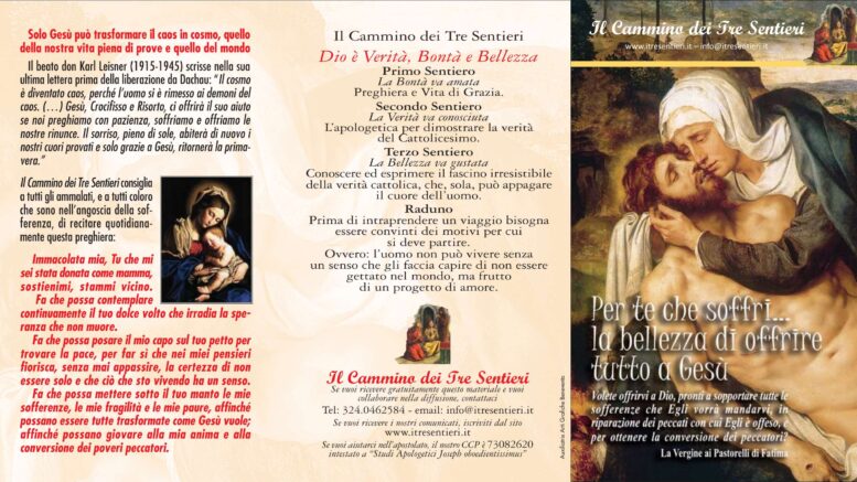 in tutti i casi utilizzando la causale: “Per te che soffri… la bellezza di offrire tutto a Gesù”