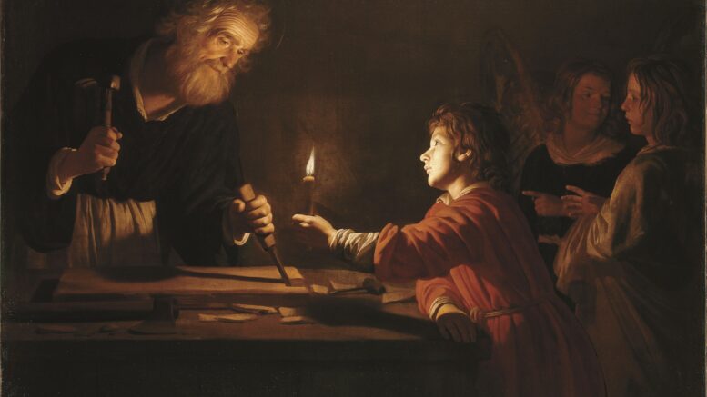 Dipinto “Gesù nella bottega di San Giuseppe” del pittore olandese Gherardo delle Notti (1592-1656).